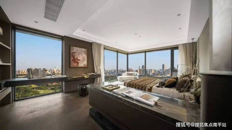 同时,项目采用地标级公建化外立面,以铝板线条勾勒塔冠美学,搭配超大窗地比与全落地幕窗,打造巨幕级天际视野,让建筑成为城市封面的同时,也为业主带来通透明亮的全景居感。