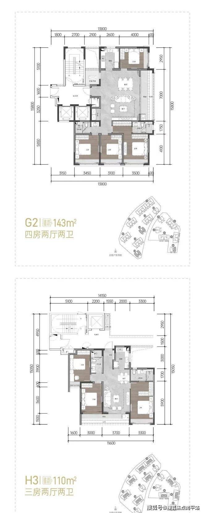 吉祥 11 号的主力户型有 100㎡的二房二厅两卫、108㎡的三房两厅两卫、128㎡的四房两厅两卫和 142㎡的四房两厅两卫,满足不同客户的需求。