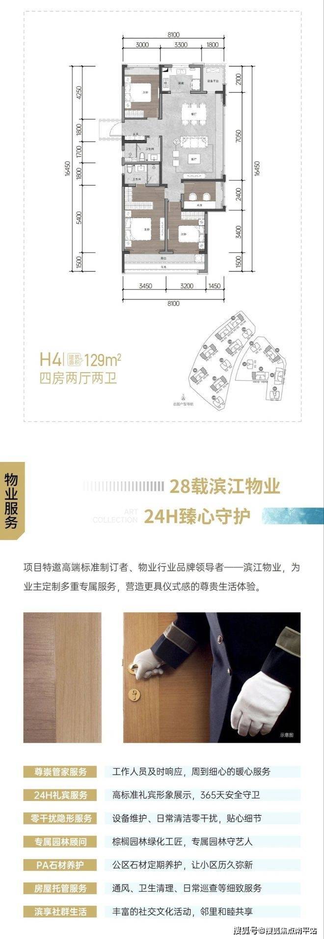 项目特邀滨江物业,为业主定制多重专属服务,营造尊贵生活体验。包括尊崇管家服务、24H 礼宾服务、零干扰隐形服务、专属园林顾问、PA 石材养护、房屋托管服务以及丰富的滨江社群生活。