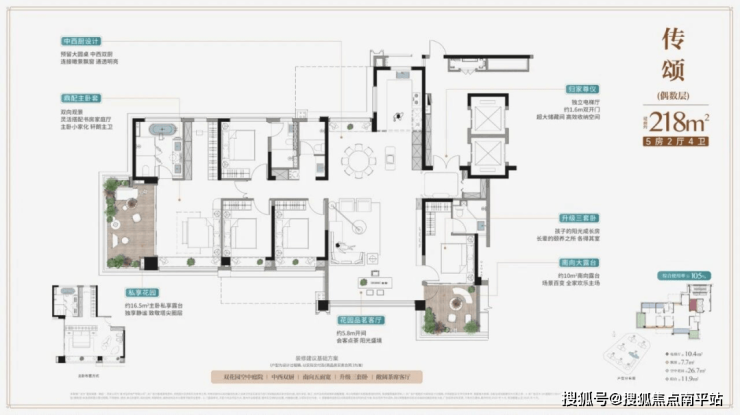 产品层面,建面约163-218㎡宋韵四代奢宅, 全线采用T2设计,综合使用率突破100%!