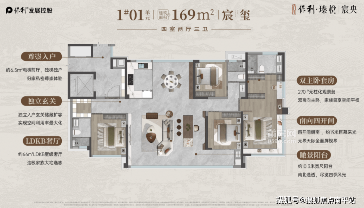 独梯独户配置+约5.5㎡电梯前厅,归家私密性拉满,尊享专属礼遇。 约16.6米超尺环幕面宽+四开间朝南,8.1米宽阳台尽揽园景与文脉盛景。 50㎡LDKB游式宽厅,空间开阔大气, 23㎡主卧套房搭配270°极致观景窗,独立卫浴与衣帽间俱全,行政双主卧设计满足家族居住的私密需求,空间利用率再进阶,彰显改善家庭的尊崇生活质感。