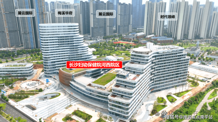 再举个类似的例子,梅溪湖的时代领峰、麓云国际,桂语云峯等楼盘,与医院也是一路之隔,不仅对居住没有影响,头排开阔的视野和景观反而比第二排的房子更舒畅。