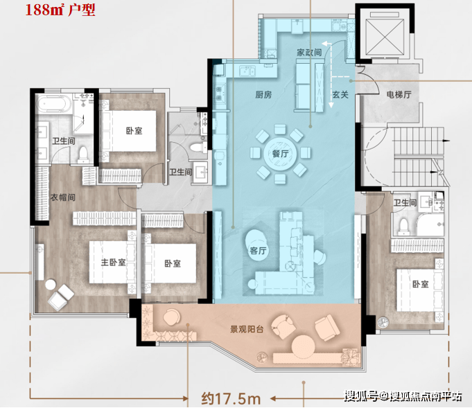 建面约 188㎡户型:独创空中浮岛