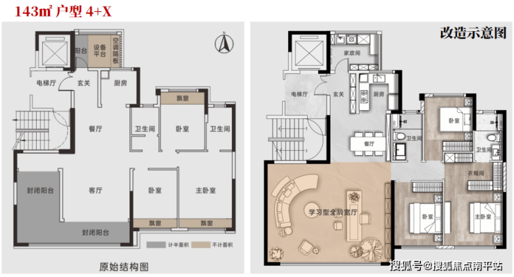 ✔设计有 3处灵活空间(北阳台、客厅功能区、南向拓展区)