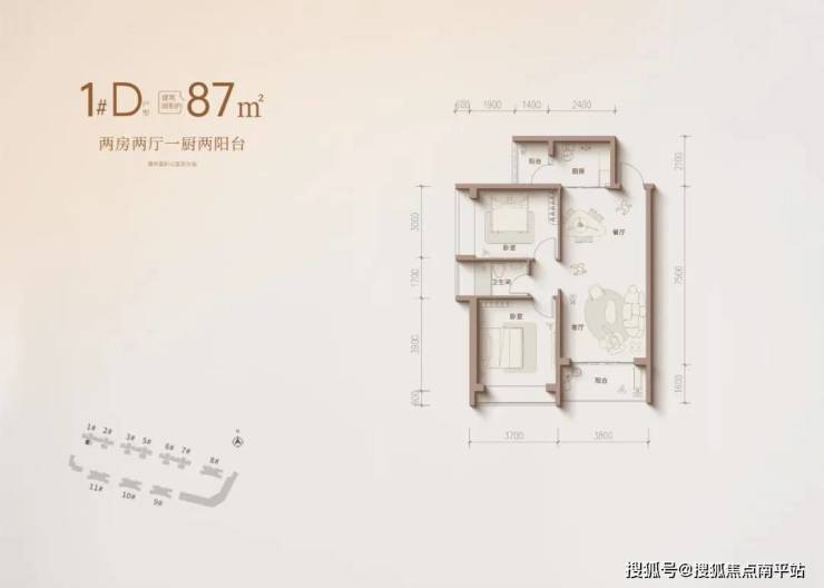 1、建面约87㎡ 两房两厅一卫:上车首选。总价最低,功能齐全,适合新婚夫妻或单身人士。在万达旁买到这样的精装现房两房,机会不多。