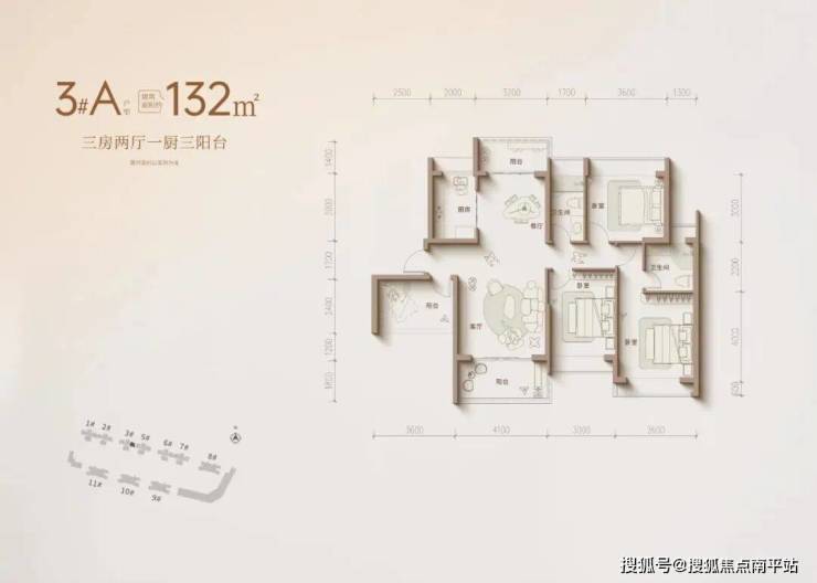 4、建面约132㎡ 3+1房两卫:一步到位。在宽敞三房基础上,多出一个完整的房间,功能最强,能满足多代居住、客房、专属书房等多元化需求。