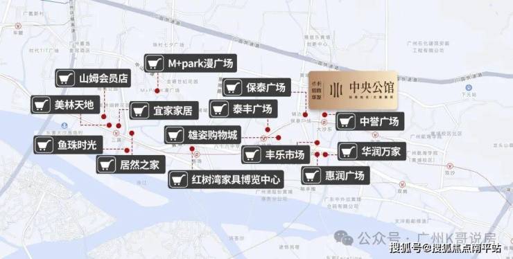 周边即享惠润广场、沃尔玛等商业配套,5公里范围内就能到三溪美林天地、保利鱼珠时光、山姆会员店、居然之家、M-PARK漫广场等大型商业配套。