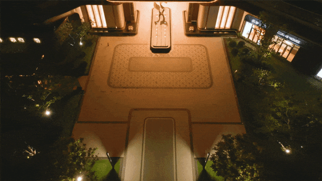 超18米的雅奢入口、7米酒店式挑高入户,搭配门前的艺术雕塑,给人以视觉的强烈冲击。