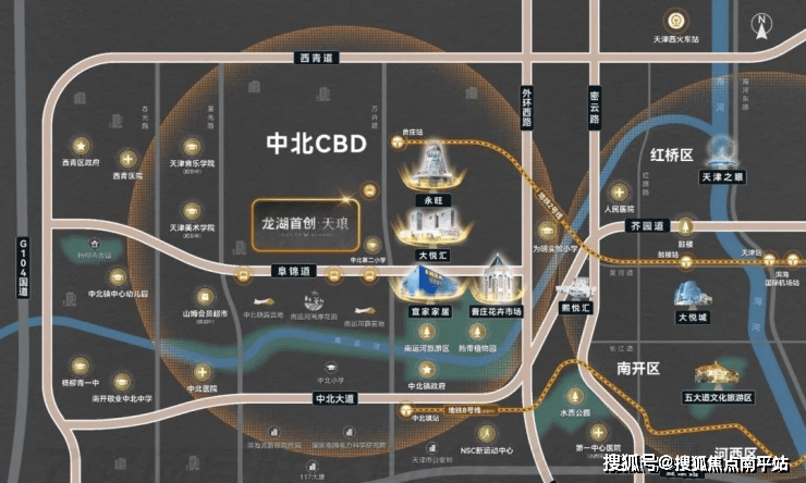 中北位居天津主城核芯纽带,毗邻南开、河西上三区,速联繁华主城核芯区