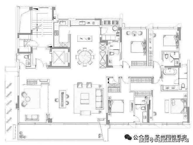 290㎡户型,21米巨幕面宽,全屋5房5卫,4个套房+保姆房+半开放式书房,阳台面宽超11米,类露台使用体验!