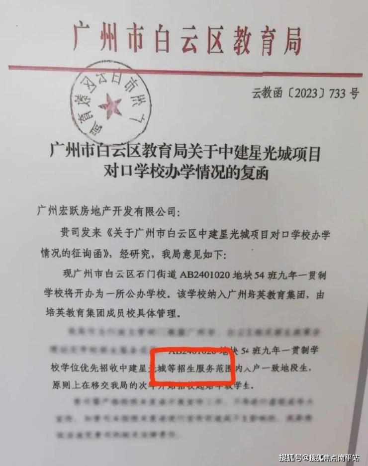 有些朋友可能会了解过这边,特别是了解过中建星光城的朋友,那边的销售会说学校优先他们的业主入读,还会给你看以下的文件,但其实不是的,他们跟你玩起了文字游戏,大家重点看圈起的文字: 等招生服务范围,还是人户一致优先为主。