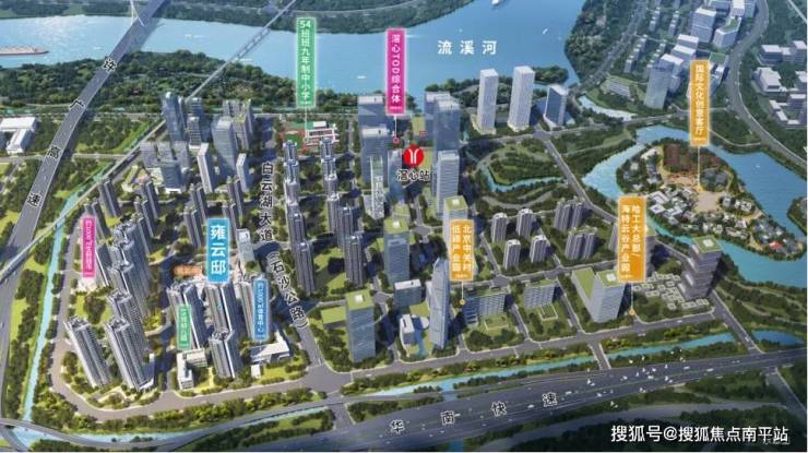 其中可到聚龙站换乘--440亿白云站TOD,这里将规划实现1轻轨+2高铁+7地铁的大型交通枢纽,便捷串联大湾区。