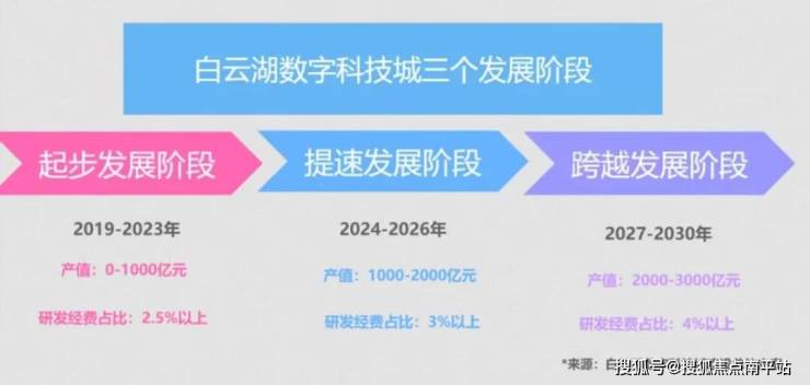 根据《白云湖数字科技城建设总体方案》白云湖数字科技城分3个阶段进行建设:
