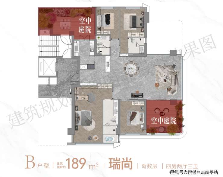 关键亮点在于,户户享有57-102㎡高拓展面积,做到了超100%得房率,相当于在这里花189㎡的钱,就能享受到约300㎡以上大平层的居住体验及墅级人生。