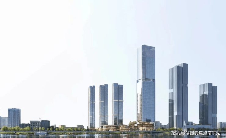 “直线属于人类,曲线属于上帝”。以“江水引向天空”流线型弧线,香槟色铝板、大玻璃面,呈现奢华美学的超流体建筑立面,谱写城市地标的奢华感受。