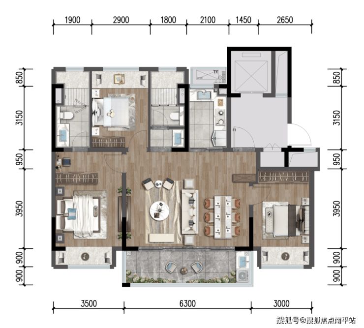 【建面约143㎡D1户型】四室两厅两卫👇👇