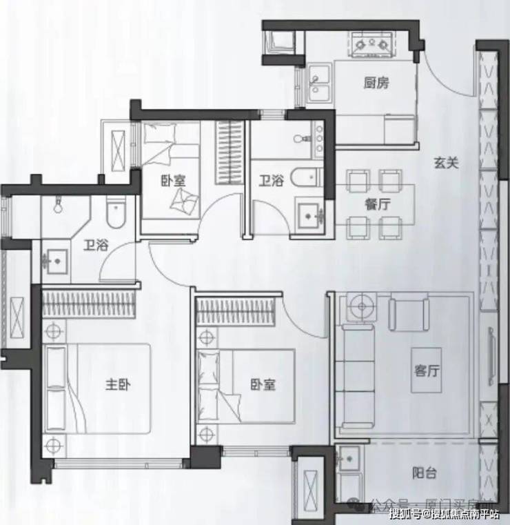 建面约78-80㎡三房两厅一卫