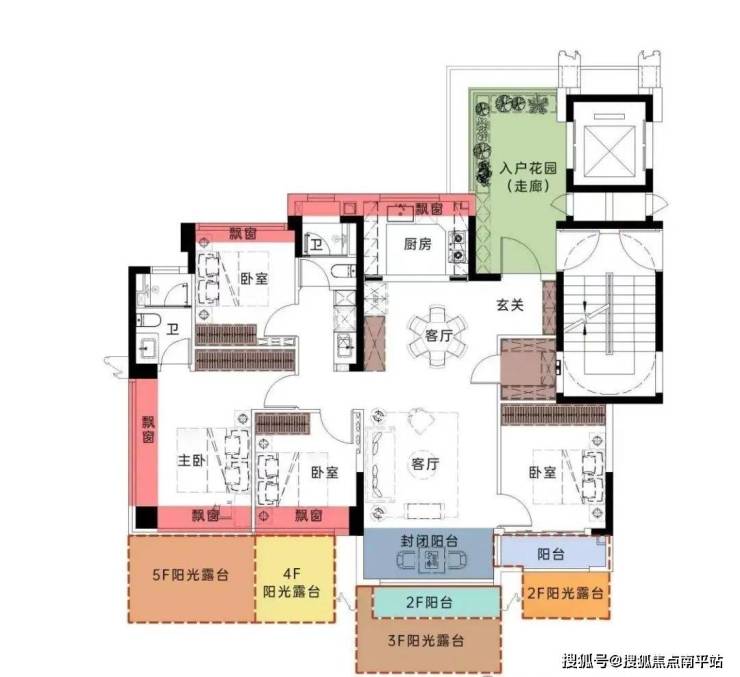 2.豪宅级独门入户,最大约9.6㎡南向晒台!
