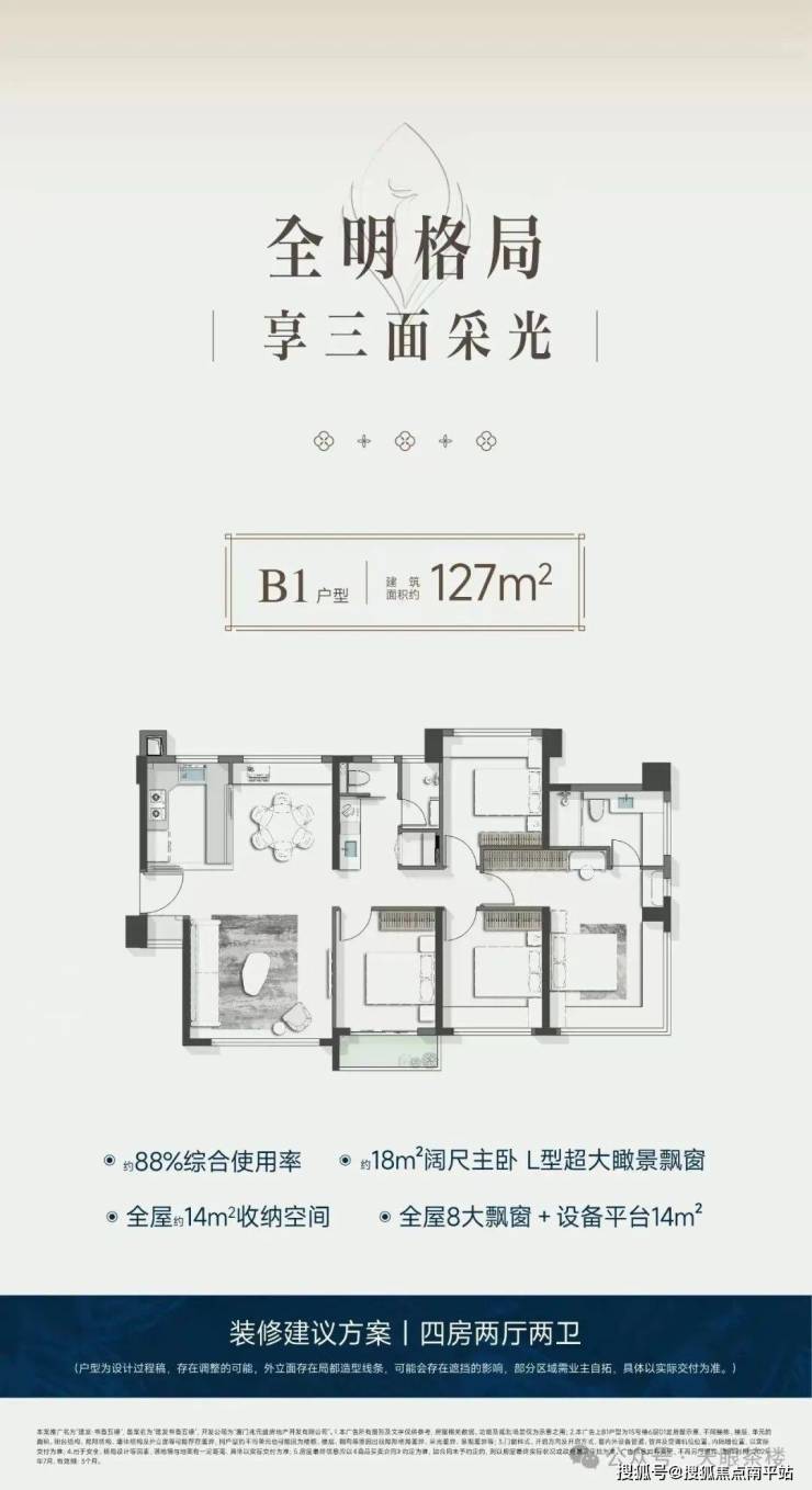 3、超强收纳,全屋约14平收纳空间;4分离卫浴,独立家政间; 南北双阳台,五缘湾同面积段唯一;