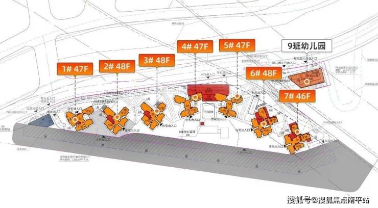 项目将建7栋住宅,都是超高层46-48层高,一字排开布局。