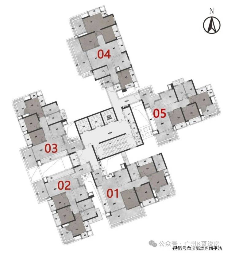 1-3栋为3梯5户,4-5栋为3梯4户,均为46-48层的超高层住宅,并且还配备一所9班幼儿园