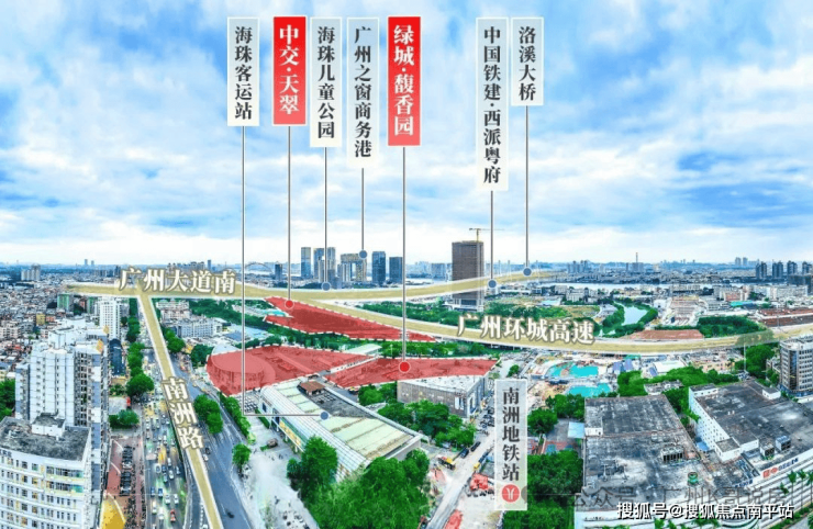 项目地块距离2号线和广佛线交汇的南洲站直线距离仅约400米,广州绕城高速和广州大道在项目旁交汇,位置可以说是“四通八达”,但因地块被不少主干道包围,自然避免不了噪音和粉尘的干扰。