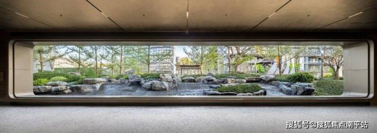 下沉式庭院以《万壑松风图》为灵感,通过叠石、流水、苍松,营造出可游可栖的立体山水意境。