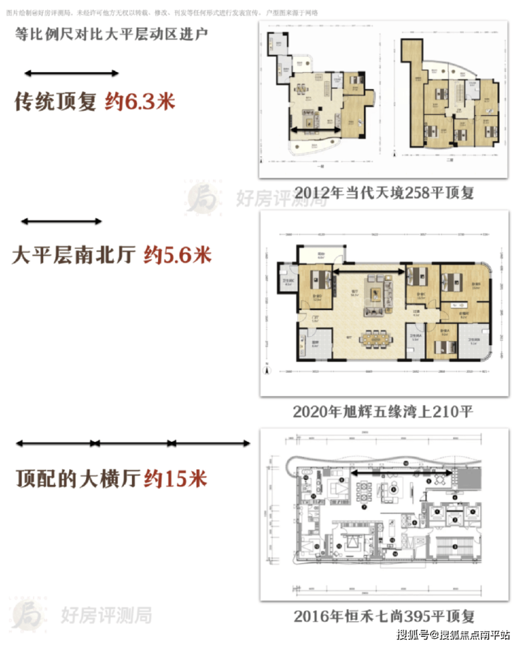 早期的南北厅大平层,视界上限6米;后来横厅流行,能做到8-10米;面积接近400㎡,可以做到十几米,具体可以看看闽南比较有代表性的几个大平层案例: