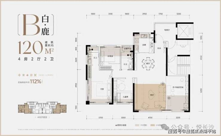 ② 建面约120㎡四房:适合二胎或三代同堂家庭