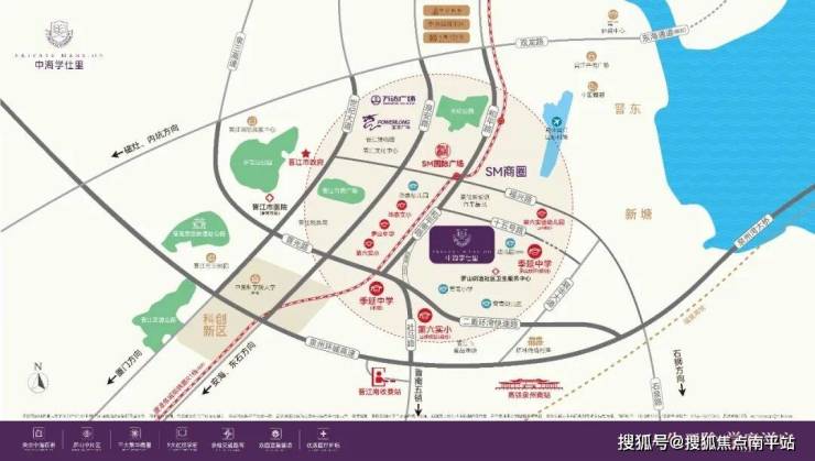 区位上,项目占位晋江罗山中片区,立于和平南路发展轴上,近距市政府、老城中心等“政经教“发展区;季延中学、第六实验小学等九大学校环绕;同时近邻SM国际广场、宝龙广场、万达广场三大繁华商圈。
