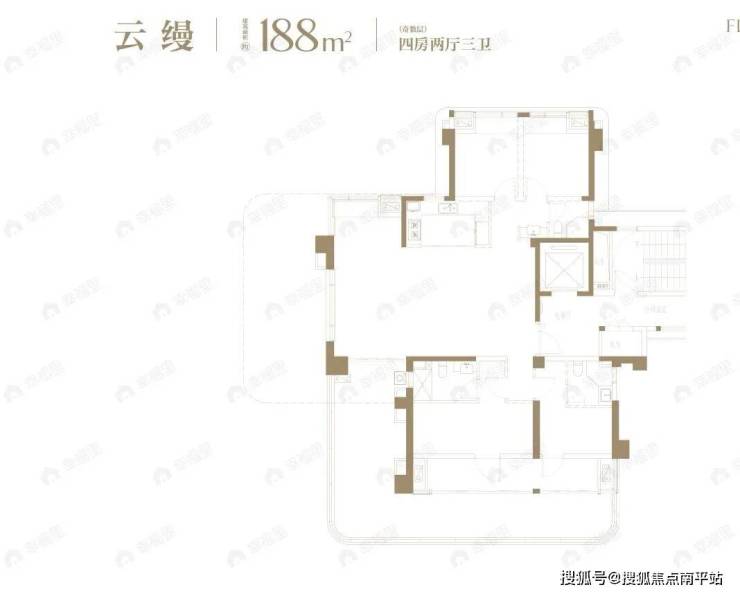 户型:155㎡、166㎡、176㎡、183/188㎡四房,少量 326㎡顶复