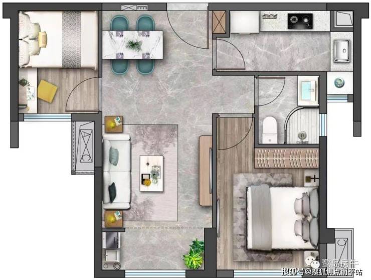 【A户型 建筑面积约61㎡魔法功能两房】