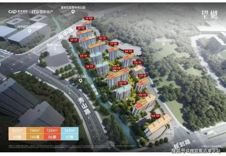 户型套数:103㎡户型88套,116㎡146套,126㎡户型86套,143㎡户型60套。