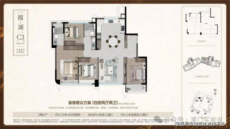 瑞湖公馆一共规划4栋楼,楼栋号1、2、3、5号楼,户型面积从96平到170多平都有,刚需改善都能选。最先推的1、2号楼,直接卖完!3号楼也快清盘了,96平的小户型就剩几套了,手慢无。目前主要卖的是5号楼看景楼栋,主133/170平,视野超赞,推窗就能看湖景,看湖景却没有加溢价,景色绝了!这两个户型都能看到景观。