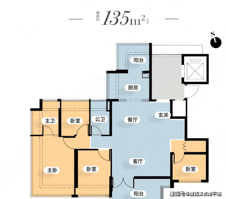 阅璟台90㎡也能做到南北对流(1栋1条梯腿),100㎡以上全部南北对流。