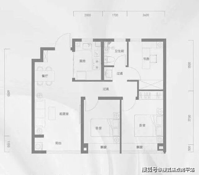 89㎡三居室:总价247万起,南向三面宽设计(开间9.1米),动静分区清晰,北向卧室可灵活改造为书房或储物间,适合三代同堂家庭。