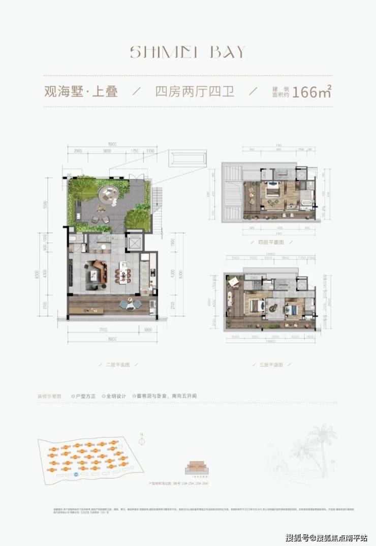|建筑面积约166㎡○户型方正,全明设计,享受阳光的律动○约8.9m大面宽,连接约270°IMAX观景露台○LDKB专享度假格局,清晰分区○主卧套房,连接环幕阳台,看尽汪洋大海○南向五开间,阳光在家里尽情撒欢○露天花园,独立入户,有天有地