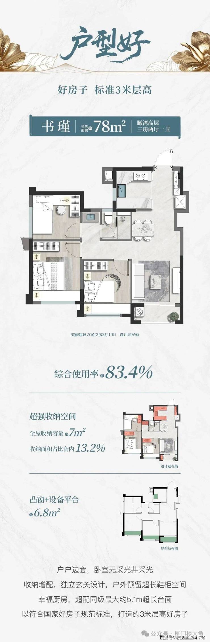 78平三房一卫