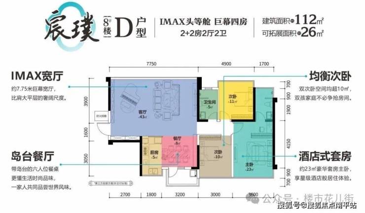 得房率均超100%,如112㎡户型直接对标大平层,自带约7.75米阔奢大宽厅。