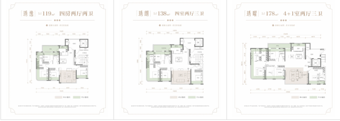 项目 在售建面约119-178㎡新规纯板楼,最高约120%得房率 ,户型极好。