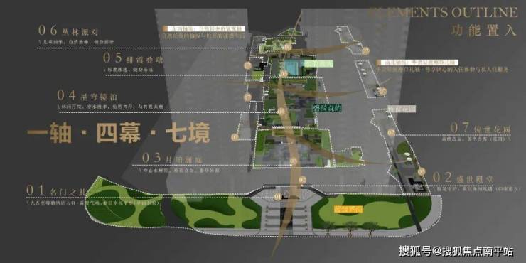 水景占比约13%,媲美百亩级大盘水景规划,打造【一轴·四幕·七境】的景观空间