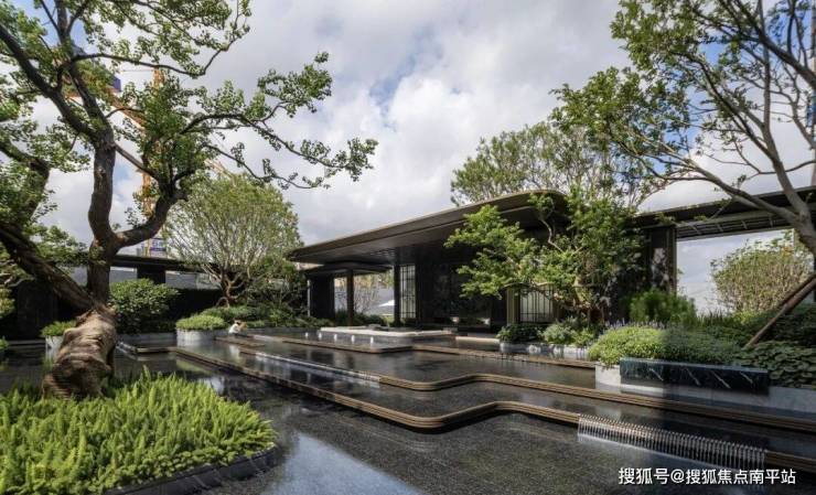 无界会客——月珀澜庭自然森养水系约1100㎡水上核心会客厅,以特色跌水和中心大水景及尊享会客雅座等组成。