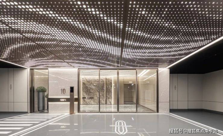 · 地下光厅——以璀璨星空顶+分色橘纹环氧自流平、分色乳胶漆作为主要品类,配以电镀不锈钢标识、陶瓷大板砖、自动平移玻璃门,塑造归家仪式尊崇。