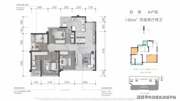 ▌明星户型:建筑面积约90㎡四房两厅两卫