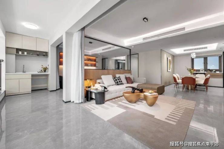 LDKB一体化设计:客厅、餐厅、厨房、阳台连通,116-117㎡四房配备6.6米跑道式阳台+50㎡横厅,增强家庭互动空间。