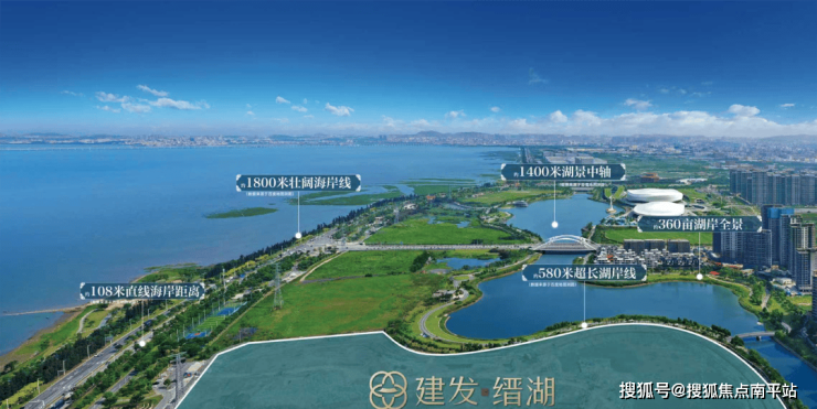 项目 别墅区更是将临湖方向地势抬高接近3米,如意湖铺面而来,带来更优视觉体验的同时,更彰显门第尊贵与非凡气度。 约108米直线海岸距离、约1800米湾海风光、约360亩生态湖域、约580米湖岸线及约1400米湖景中轴,成就对城市资源的绝对占有。