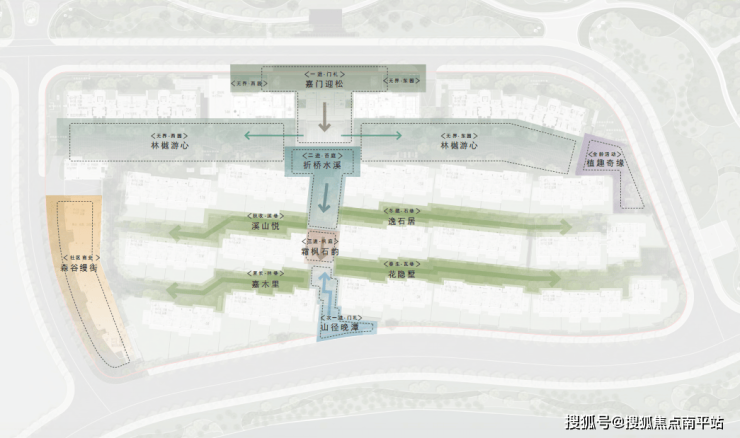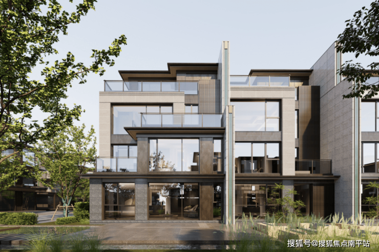 锯齿状排布强化每一栋联排的独栋感,立面则通过 分户墙细化设计强化昭示性,保证独栋感,让业主生活的私密性与尊崇感跃升至全新维度。