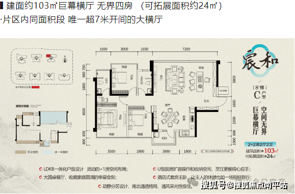 南北双花园产品“逆天”拓展率,实得面积约220㎡; 全新三代户型,超100%得房率