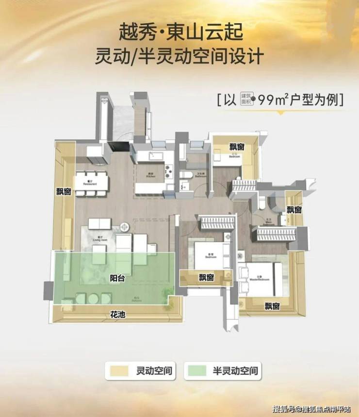 作为越秀区首个“新规”项目,东山云起在产品设计上带来了诸多创新。项目阳台占比达20%,使用率超100%,全南向设计,彻底告别了老城区住宅使用率普遍停留在80%的困境。