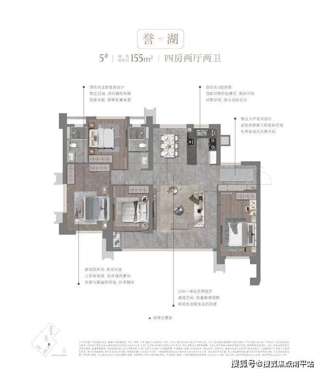 在【好房子】的时代命题下,四房成了当代望族生活的“基准线”。建发·望湖一经诞生便重塑了武汉高端空间标准。项目产品涵盖155-225㎡面积段,面宽四开间起步,LDKB空间一体化,三卧室瞰湖,以纯粹四房,诠释高端生活品位。
